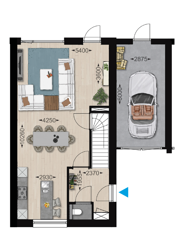 Er is veel variatie in de plattegronden, in deze brochure zijn een aantal plattegronden geplaatst, op de verkooptekeningen zijn ook de overige plattegronden uitgewerkt. Vraag uw makelaar om de verkooptekeningen en kopersopties.