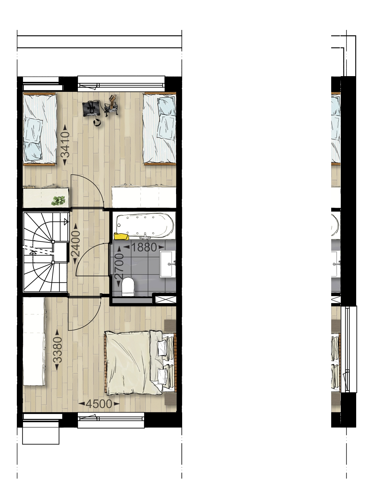 - Mogelijkheid van extra toilet of douche op de tweede verdieping