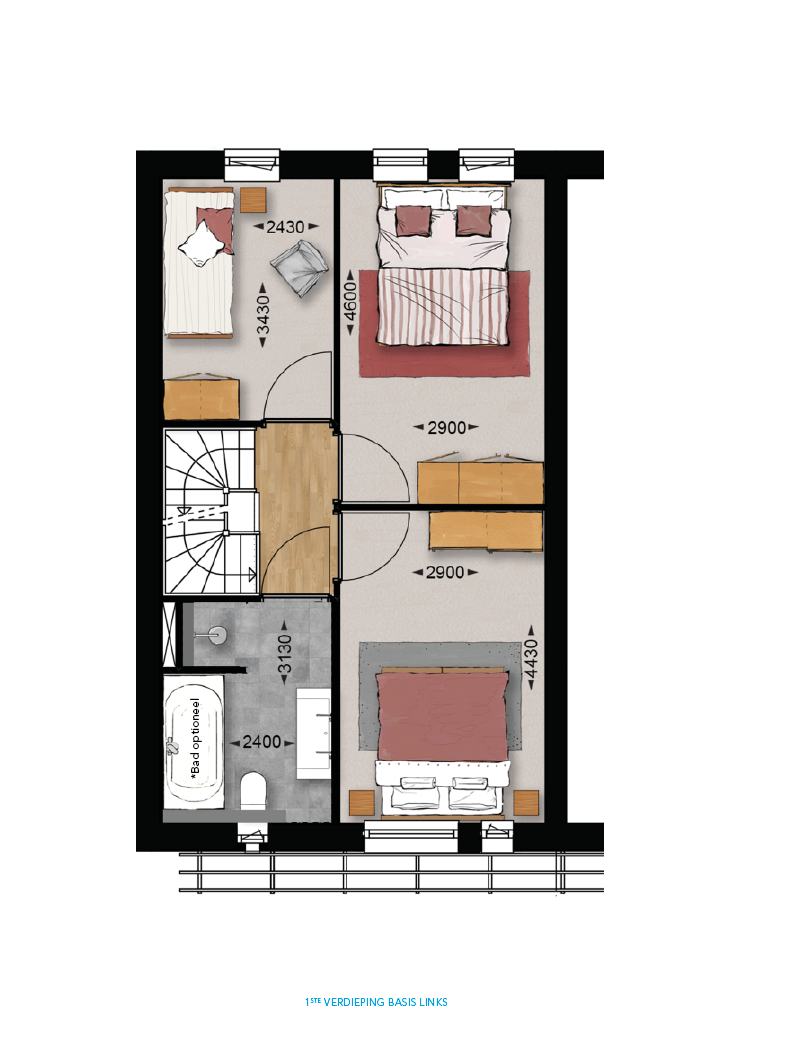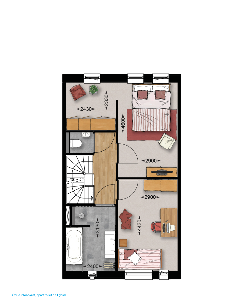 Er is veel variatie in de plattegronden. In deze brochure zijn een aantal plattegronden geplaatst. Op de verkooptekeningen zijn ook de overige plattegronden uitgewerkt. Vraag uw makelaar om de verkooptekeningen.