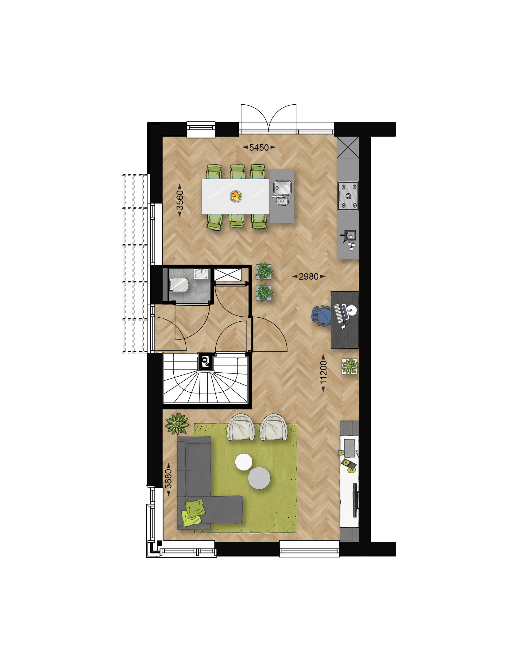 Er is veel variatie in de plattegronden, in deze brochure zijn een tweetal plattegronden geplaatst, op de verkooptekeningen zijn ook de overige plattegronden uitgewerkt.