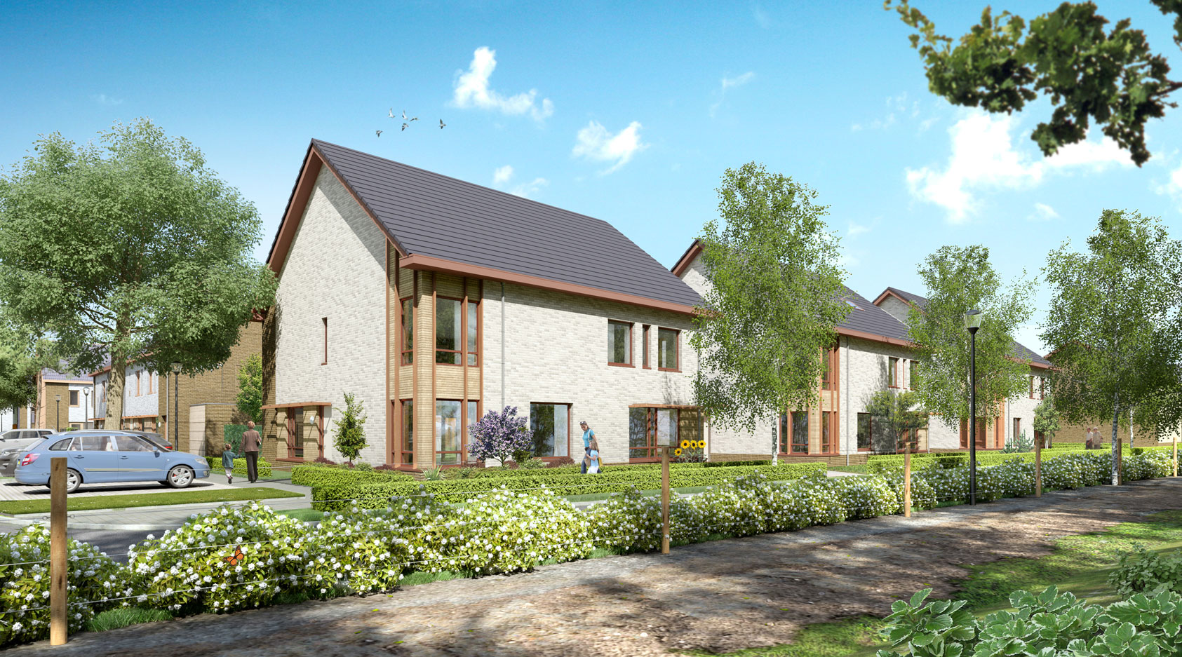 Vier hoek- en rijwoningen